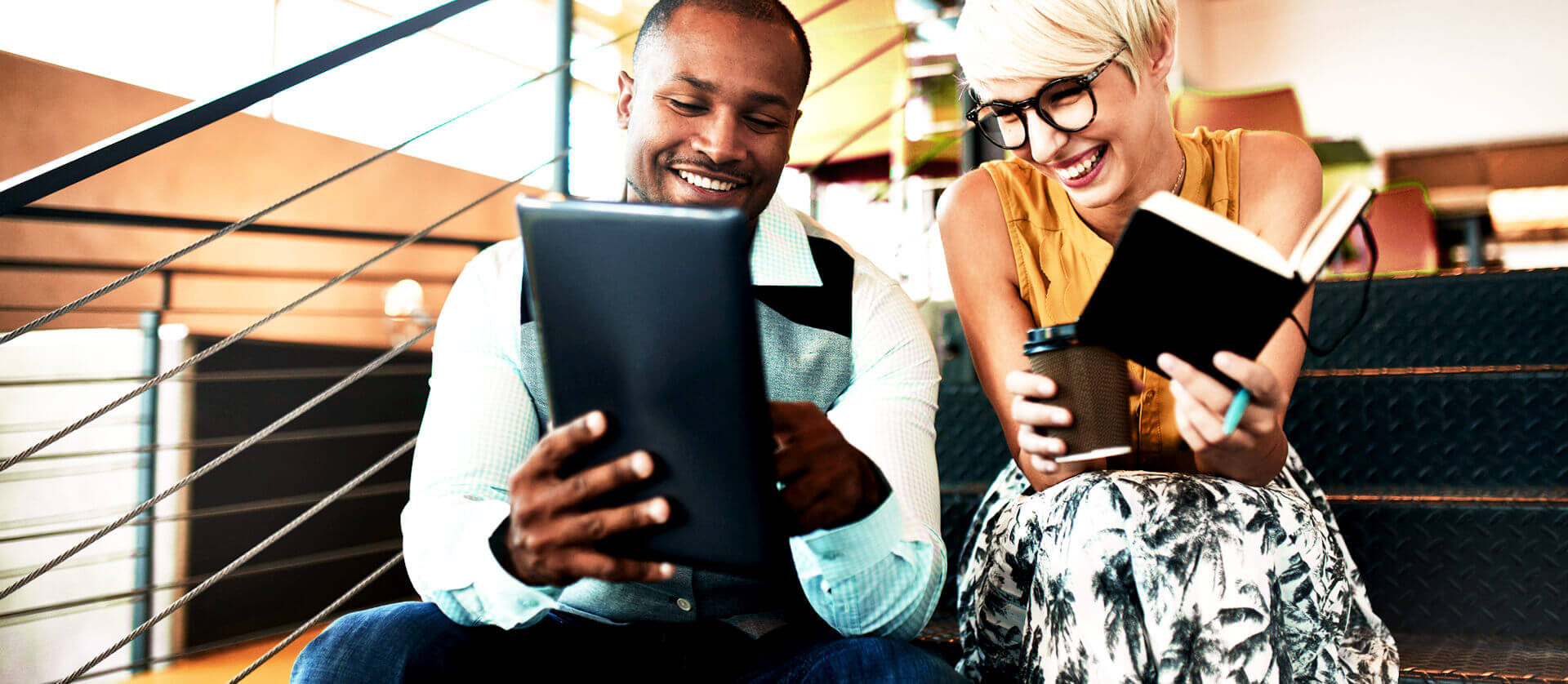 Two people smiling outside
